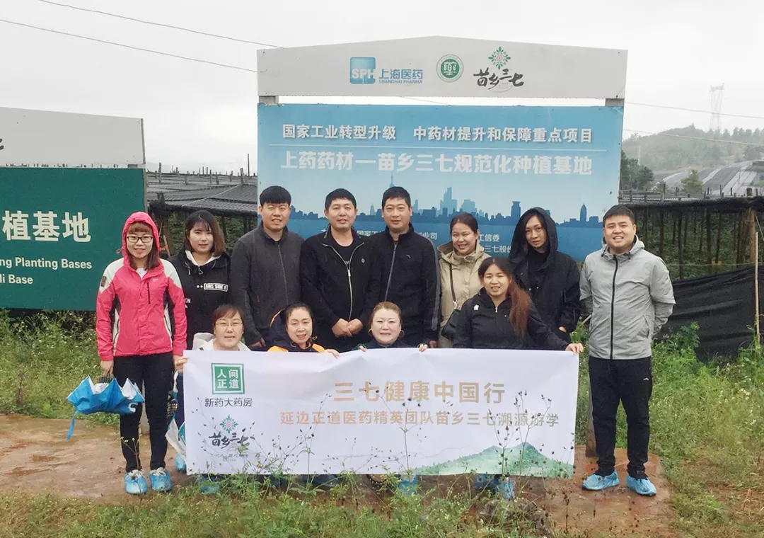 延邊正道的精英團(tuán)隊(duì)在苗鄉(xiāng)無公害三七種苗繁育基地前合影